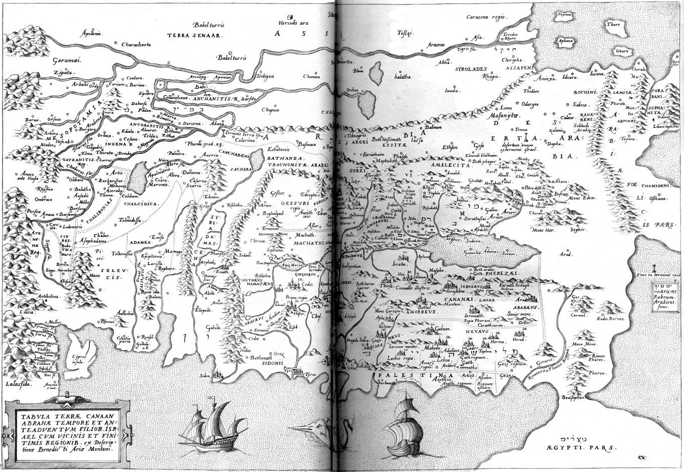 Description: The map of Canaan is turned on its side so that the top of the page is towards the east.