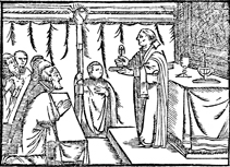 Description: During the Eucharist, believers consume bread and wine representing the body and blood of Christ.