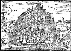 Description: The Tower of Babel is constructed. Illustration by Pierre Eskrich (ca. 1550-ca. 1590).