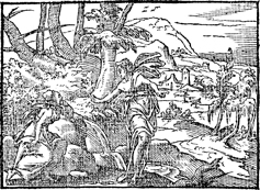 Description: An angel instructs Hagar to return to Abraham and Sarah. Illustration by Pierre Eskrich (ca. 1550-ca. 1590).