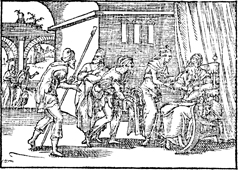 Description: After dipping Joseph's tunic into goat's blood, Joseph's brothers deceive their father, Jacob, into thinking that an animal has devoured Joseph. Illustration by Pierre Eskrich (ca. 1550-ca. 1590).