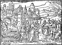 Description: Judah threatens to burn his daughter-in-law Tamar for prostitution, until she presents him with the staff, cord, and seal of the one who slept with her. When Judah sees the items, he recognizes them as the pledge he had given her. Illustration by Pierre Eskrich (ca. 1550-ca. 1590).
