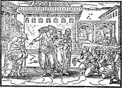 Description: Joseph has Simeon arrested until his brothers return to Egypt with Benjamin to prove they are not spies. Illustration by Pierre Eskrich (ca. 1550-ca. 1590).