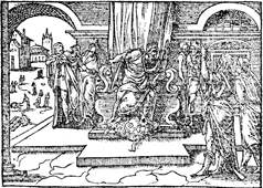 Description: Moses and Aaron appear before Pharaoh, but the result is harsher treatment for the Israelite slaves. In the background the Israelites are driven by the taskmaster. Illustration by Pierre Eskrich (ca. 1550-ca. 1590).