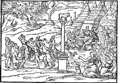 Description: As God gives the Ten Commandments to Moses on Mt. Sinai, Israel worships the golden calf and so violates the law. Illustration by Pierre Eskrich (ca. 1550-ca. 1590).
