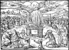 Description: The priests begin their ministry by offering a burnt offering unto God. Illustration by Pierre Eskrich (ca. 1550-ca. 1590).