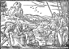 Description: Adoni-Bezek's fingers are cut off. Illustration by Pierre Eskrich (ca. 1550-ca. 1590).