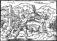 Description: Samson kills a lion. Illustration by Pierre Eskrich (ca. 1550-ca. 1590).
