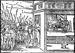 Description: Danites inquire of a Levite priest at the house of Micah. Illustration by Pierre Eskrich (ca. 1550-ca. 1590) (ca. 1550-ca. 1590).