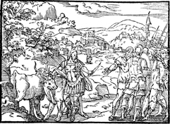 Description: Saul sends out pieces of a cow to the Ammorite camp as a threat. Illustration by Pierre Eskrich (ca. 1550-ca. 1590).