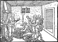 Description: Saul consults the medium at Endor to call up the spirit of Samuel. Illustration by Pierre Eskrich (ca. 1550-ca. 1590).