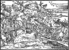 Description: A battle scene depicting David's military victories. Illustration by Pierre Eskrich (ca. 1550-ca. 1590).