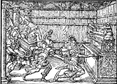Description: Joab is murdered by Benaiha, son of Jehoiada, in the temple. Illustration by Pierre Eskrich (ca. 1550-ca. 1590).