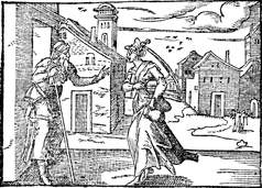 Description: Jeroboam I’s wife comes to Ahijah to learn if their son will live. Illustration by Pierre Eskrich (ca. 1550-ca. 1590).