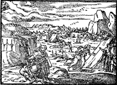 Description: Nehemiah cries out to God in prayer over the fallen walls of Jerusalem. Illustration by Pierre Eskrich (ca. 1550-ca. 1590).