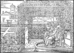 Description: Susanna is propositioned by two elders. Illustration by Pierre Eskrich (ca. 1550-ca. 1590).