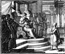 Description: Pharaoh and Egypt’s premiere magicians and wise men listen with great wonder, as Joseph interprets Pharaoh’s dreams. Engraving by Martin Bernigeroth (1670-1733) after the design of Samuel Bottschild (1641-1707).
