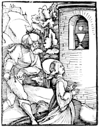 Description: St. Barbara is beheaded while kneeling before a chalice.