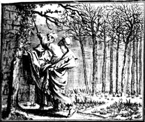Description: Moses with Aaron alongside brings a plague of locusts on Pharaoh and the Egyptians that destroys all vegetation. Engraving by Martin Bernigeroth (1670-1733) after the design of Samuel Bottschild (1641-1707).