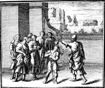 Description: Samuel anoints David king of Israel in the presence of his father and brothers. Engraving by Martin Bernigeroth (1670-1733) after the design of Samuel Bottschild (1641-1707).
