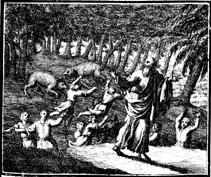 Description: After Elisha pronounces a curse on youths who mock him, two bears come from the woods to maul the 42 youths. Engraving by Martin Bernigeroth (1670-1733) after the design of Samuel Bottschild (1641-1707).