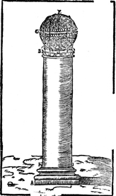 Description: One of the two bronze pillars with ornate capitals.