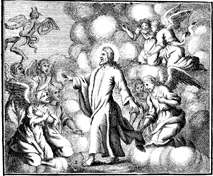 Description: Angels come to minister to Jesus after his temptation by the devil. Engraving by Martin Bernigeroth (1670-1733) after the design of Samuel Bottschild (1641-1707).