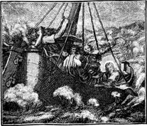 Description: Jesus sleeps while a storm rages around the boat in which he and the disciples are traveling. Engraving by Martin Bernigeroth (1670-1733) after the design of Samuel Bottschild (1641-1707).