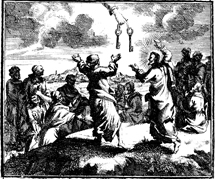 Description: The Apostle Peter receives the keys to the Kingdom of Heaven. Engraving by Martin Bernigeroth (1670-1733) after the design of Samuel Bottschild (1641-1707).