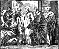 Description: Jesus raises a widow’s son from the dead at Nain. Engraving by Martin Bernigeroth (1670-1733) after the design of Samuel Bottschild (1641-1707).