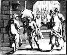 Description: The Pharisees condemn the paralytic for carrying his mat on the Sabbath. Engraving by Martin Bernigeroth (1670-1733) after the design of Samuel Bottschild (1641-1707).