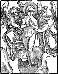 Description: Mary Magdalene(?) is held by two angels.