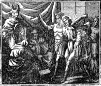 Description: A guard strikes Jesus, as he is questioned by Annas, the former High Priest. Engraving by Martin Bernigeroth (1670-1733) after the design of Samuel Bottschild (1641-1707).
