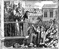 Description: Pilate presents Jesus to the people after his flogging, at which point and the chief priests and police ask for him to be crucified. Engraving by Martin Bernigeroth (1670-1733) after the design of Samuel Bottschild (1641-1707).