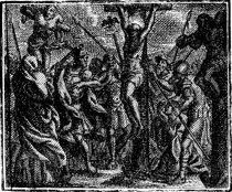Description: The soldiers pierce Jesus’ side when they see he is already dead, and blood mixed with water pours from Jesus’ body. Engraving by Martin Bernigeroth (1670-1733) after the design of Samuel Bottschild (1641-1707).