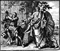 Description: In Lystra, the Apostle Paul heals a man who had been crippled from birth. After the crowds see this, they believe that Paul is Zeus, and that Barnabas is Hermes. Engraving by Martin Bernigeroth (1670-1733) after the design of Samuel Bottschild (1641-1707).