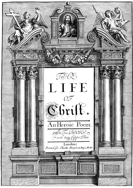 Description: This historiated title-page border featues a small portrait of Christ with the globus cruciger.