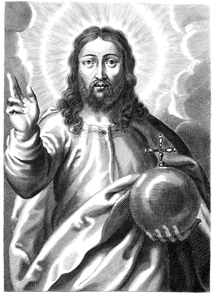 Description: A portrait of Jesus Christ in the clouds, holding a globus cruciger.