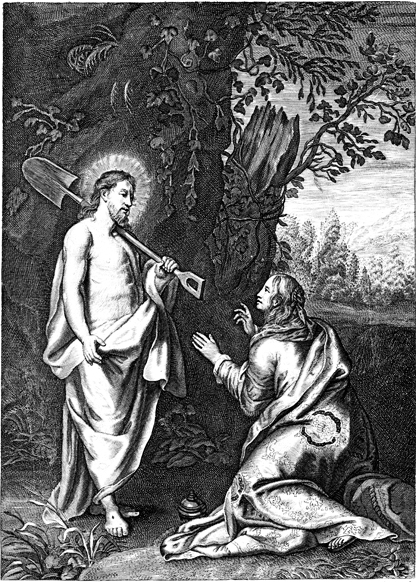 Description: Mary Magdalene speaks to Jesus, but at first she thinks he is the gardener.