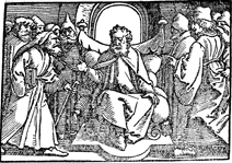 Description: A king is listening to his subjects.