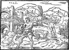 Description: Samson kills a lion. Illustration by Pierre Eskrich (ca. 1550-ca. 1590).