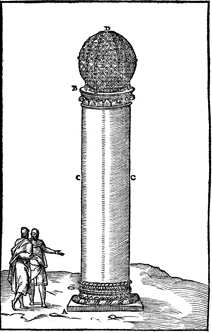 Description: One of the two bronze pillars with ornate capitals. Illustration by Pierre Eskrich (ca. 1550-ca. 1590).