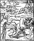 Description: In the background Jesus quiets a storm, while in the foreground he casts demons out of two men and into a herd of pigs. Illustration by Pierre Eskrich (ca. 1550-ca. 1590).