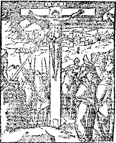 Description: Jesus is crucified on Golgotha as Mary Magdalene, Mary the mother of James and Joseph, and the mother of the sons of Zebedee look on. Illustration by Pierre Eskrich (ca. 1550-ca. 1590).