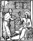 Description: Nicodemus, a Pharisee, comes to visit Jesus in the night and asks him questions. Illustration by Pierre Eskrich (ca. 1550-ca. 1590).