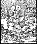 Description: Upon the opening of the seventh seal, angels are given seven trumpets, while another pours out a golden censor upon the earth. Illustration by Pierre Eskrich (ca. 1550-ca. 1590).