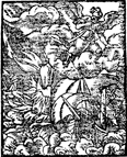 Description: An angel sounds the second trumpet and causes a huge mountain to ignite with fire and destroy a third of the sea and ships. Illustration by Pierre Eskrich (ca. 1550-ca. 1590).