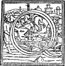 Description: An initial letter Q with a farmer plowing his field and a messenger bringing him a message.