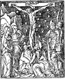 Description: Darkness comes over the land as Jesus is crucified. The women who followed Jesus from Galilee stand by Jesus' cross.