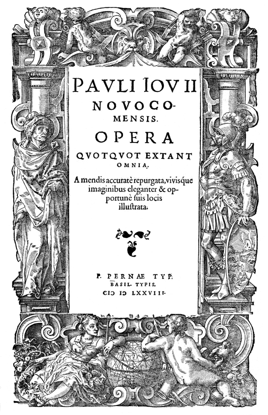 Description: A title page border with a robbed man to the left, a soldier to the right, and a globe at the bottom.